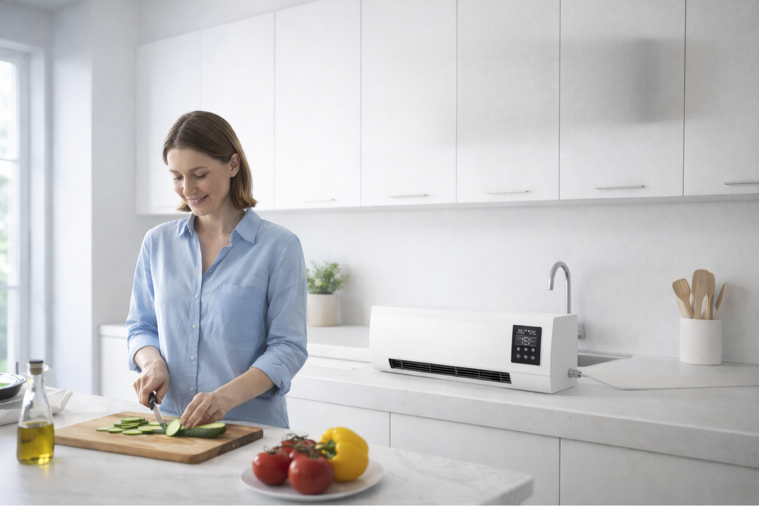 Simply connect the unit to a standard power outlet — no drilling, hoses, or professional setup required.